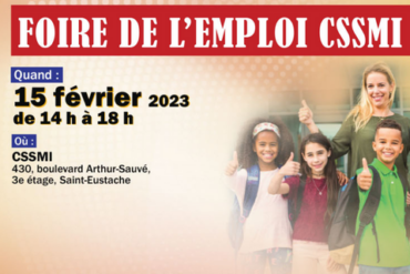 Vous êtes intéressé.e.s à travailler dans le milieu de l’éducation? NOUS RECRUTONS! Venez rencontrer notre équipe des ressources humaines le mercredi 15 février de 14 h à 18 h au Centre de services scolaire des Mille-Îles (CSSMI) à l’adresse suivante : 430, boulevard Arthur-Sauvé, 3e étage, Saint-Eustache, J7R 6V6. Plusieurs postes disponibles : éducateurs en […]